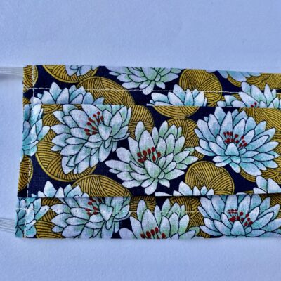 Masque 3 plis adulte, imprimé nénuphar vert clair moutarde