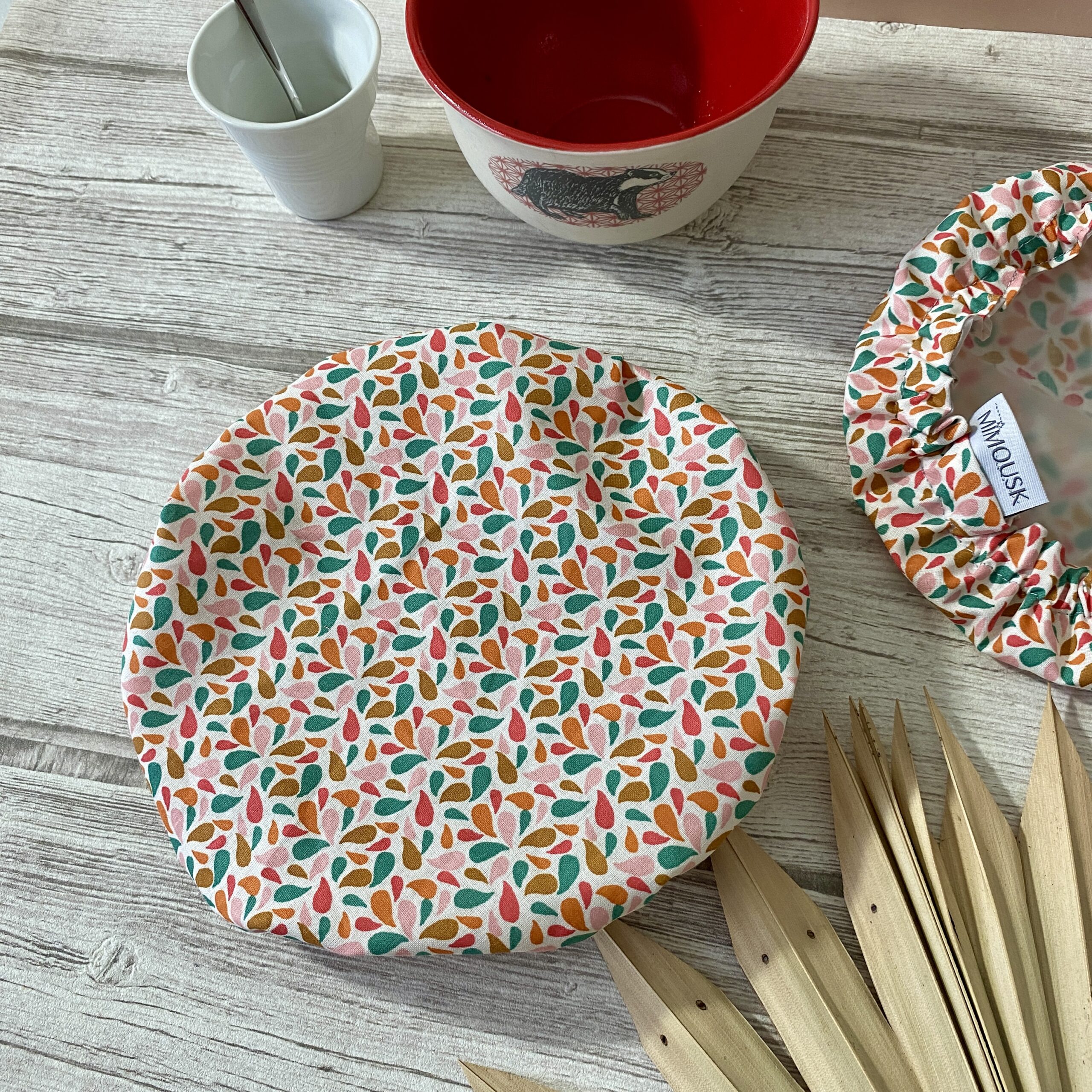 Charlotte couvre-bol élastiquée. Protégez les petits restes du frigo, tout en évitant d’utiliser du film plastique ou du papier aluminium jetables au dessus de vos bols. Cette charlotte à bol convient à un grand bol ou un saladier de 22 à 27cm de diamètre. Tissu imprimé coton à l’extérieur, et membrane imperméable et respirante, spéciale « contact alimentaire » à l’intérieur, proche des aliments. Nettoyage en machine à 30°.