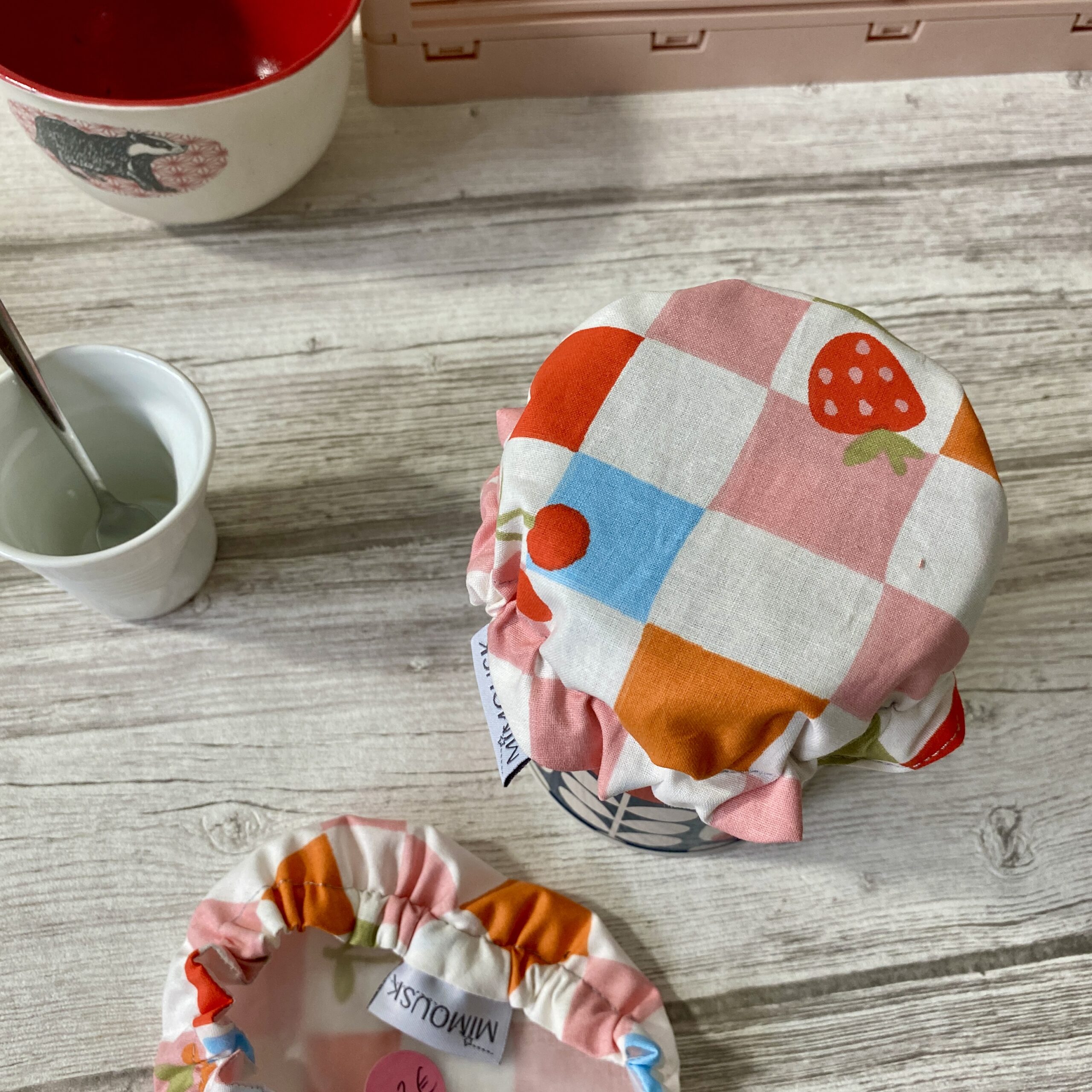 Charlotte élastiquée couvre-tasse ou couvre-bol. C’est parfait pour protéger les restes sans avoir à les transvaser dans un autre contenant! Ceci en évitant d’utiliser du film plastique ou du papier aluminium jetables au dessus de vos bols. Cette charlotte à bol convient à un format mug ou tasse à thé. Tissu imprimé coton à l’extérieur, et membrane imperméable et respirante, spéciale « contact alimentaire » à l’intérieur, proche des aliments. Nettoyage en machine à 30°.