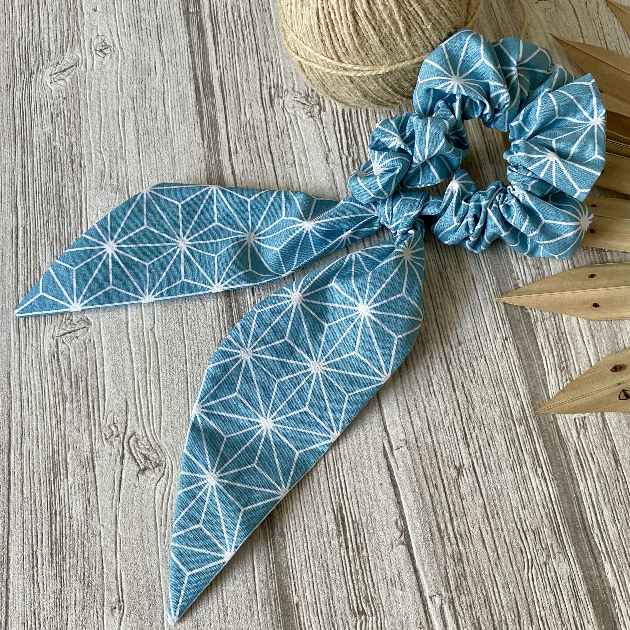 Le petit + : la partie foulard est amovible si vous ne souhaitez que l’effet élastique en tissu « chouchou », qui entoure votre bun ou votre queue de cheval.