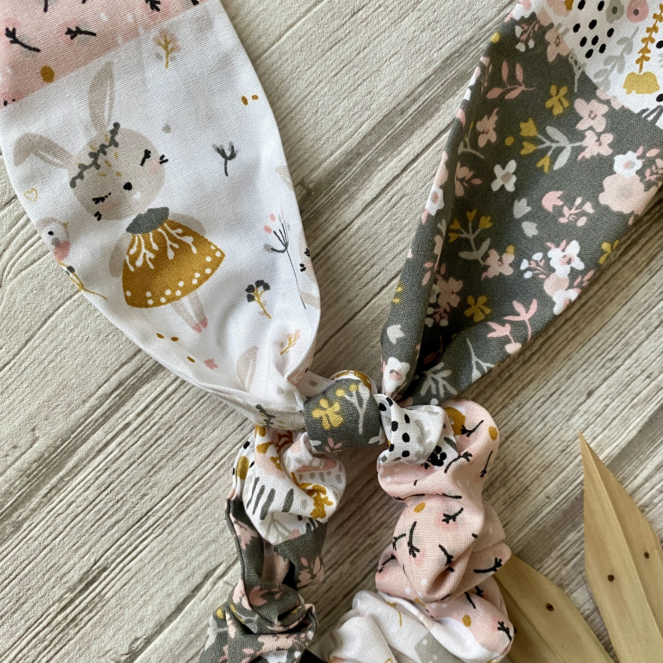 Le petit + : la partie foulard est amovible si vous ne souhaitez que l’effet élastique en tissu « chouchou », qui entoure votre bun ou votre queue de cheval.