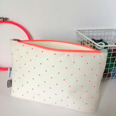 Fermeture par zip (fluo lui aussi !), et une petite touche délicate d’argenté pour en faire une pochette unique, chic et pratique.