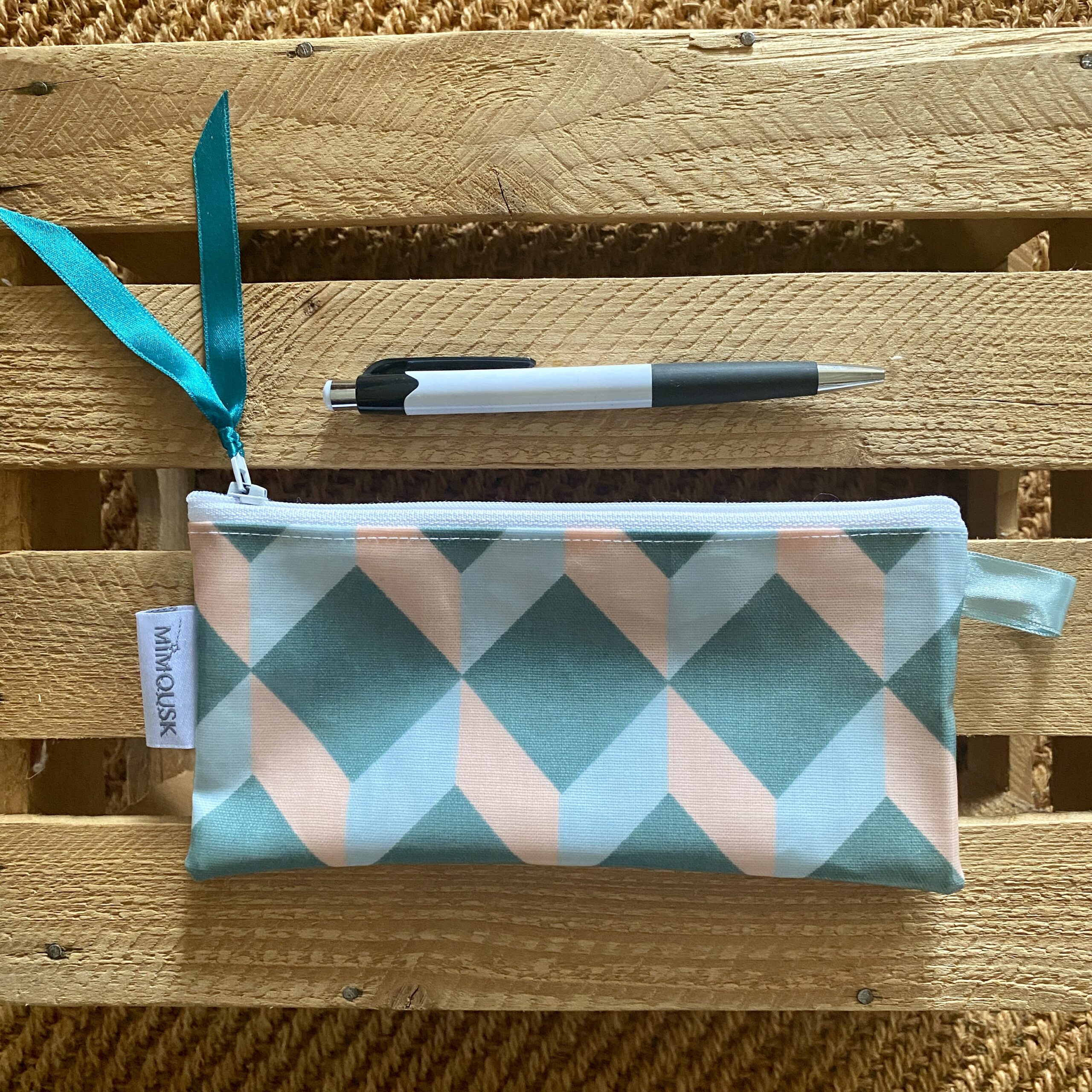 Trousse plate enduite longue non doublée. De quoi ranger tous vos crayons ou vos petites affaires pour éviter de les perdre au fond du sac. Utilisable aussi comme trousse à brosse à dents ! Tissu enduit lavable d’un coup d’éponge humide. Ruban sur la tirette pour la finition.