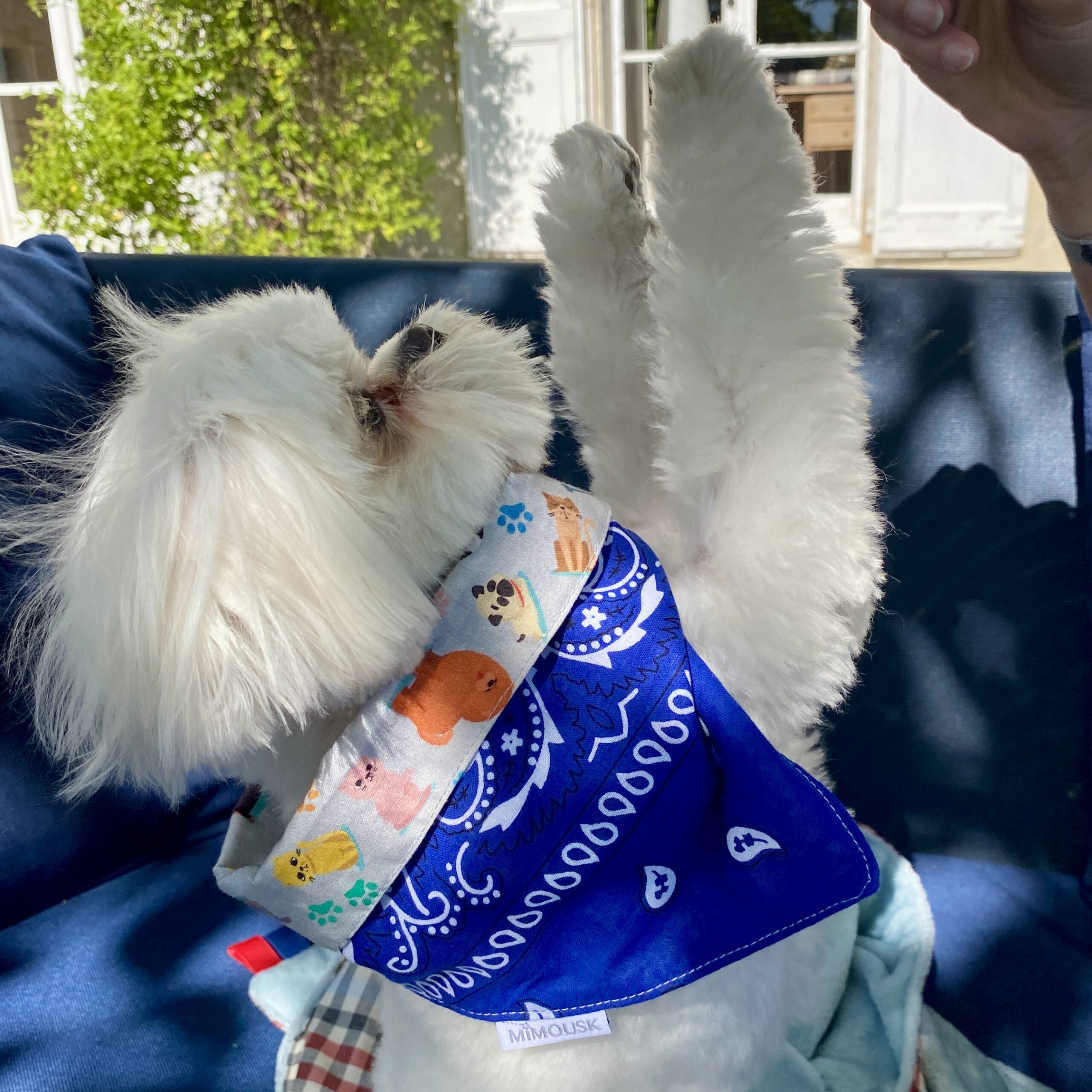 Motif : bandana bleu roi, doublé de tissu imprimé chiens diverses races.
