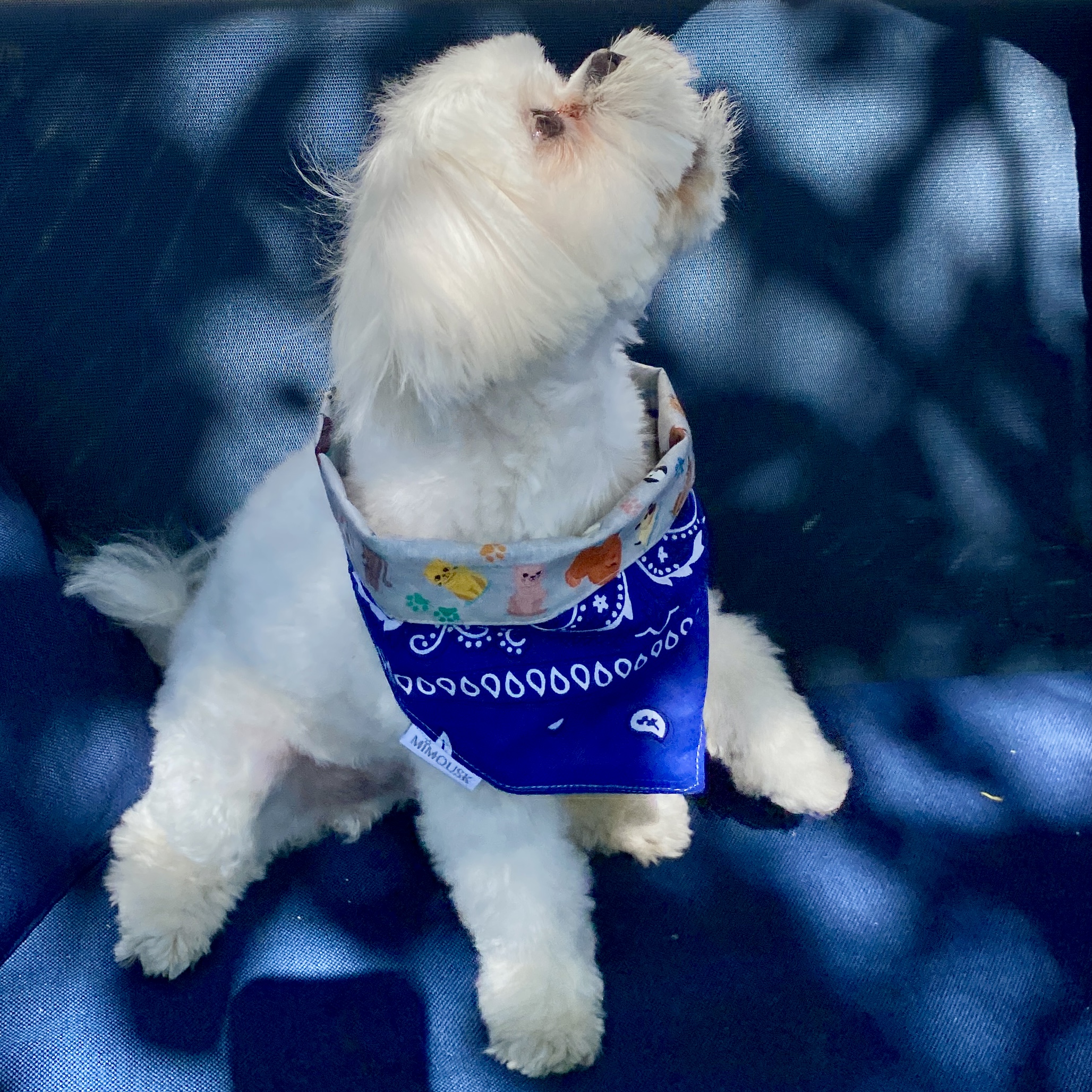 Bandana pour chien / bleu roi, imprimé chiens