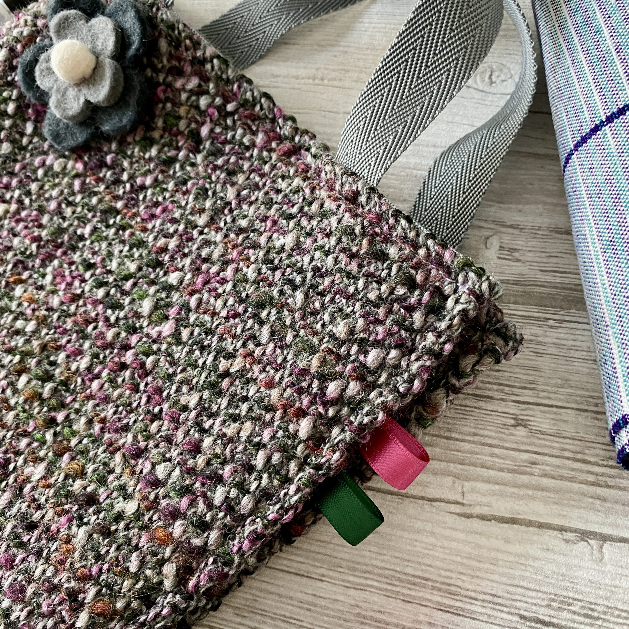 Mini sac tricot / violet, rose, gris, vert
