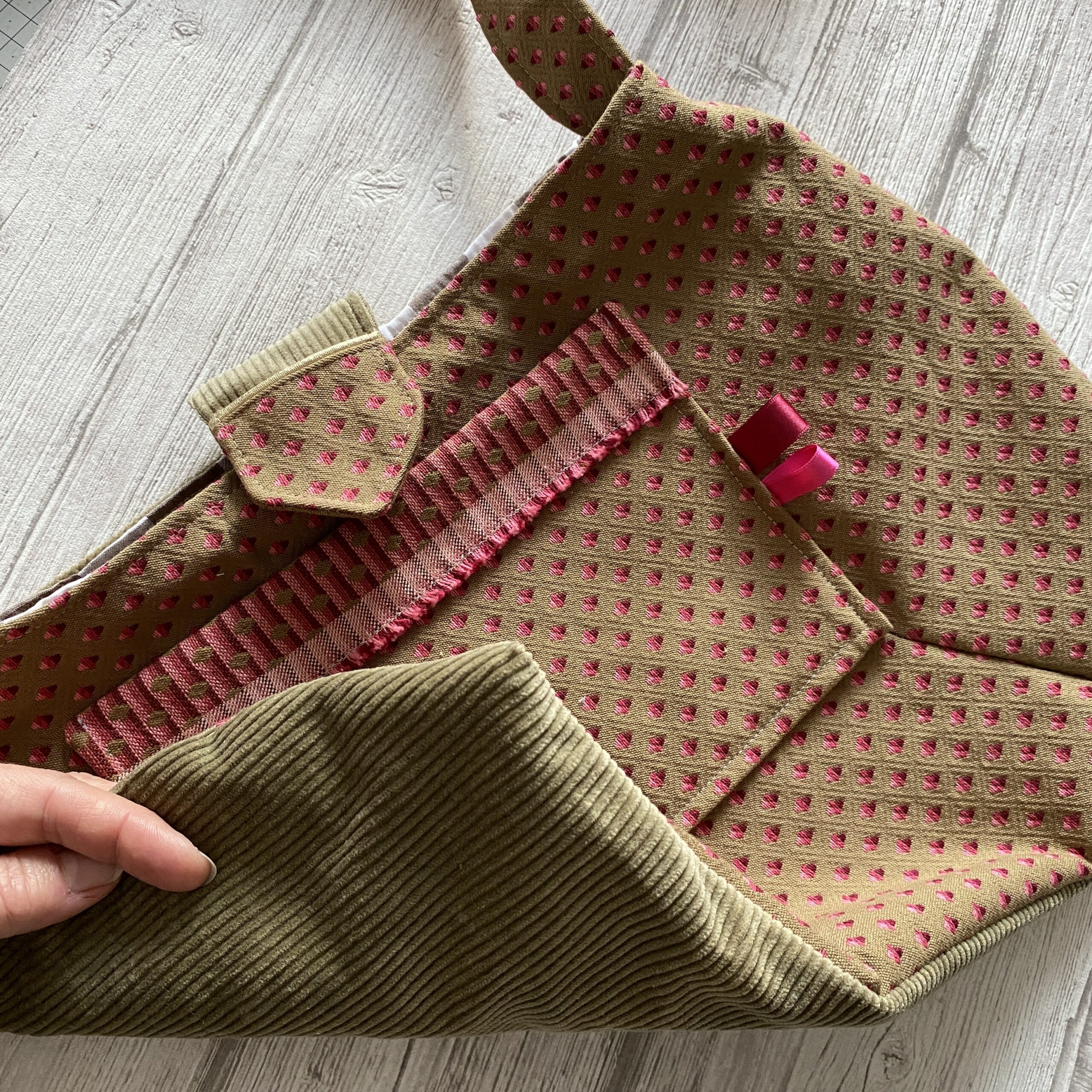 Sac boule bandoulière, velours et jacquard / Beige bordeaux rose