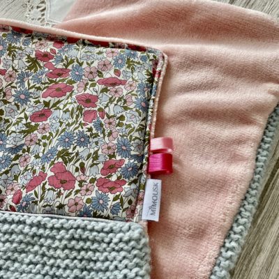 Couverture Liberty -tricot, polaire, tissu poppy- Rose/Gris/Bleu
