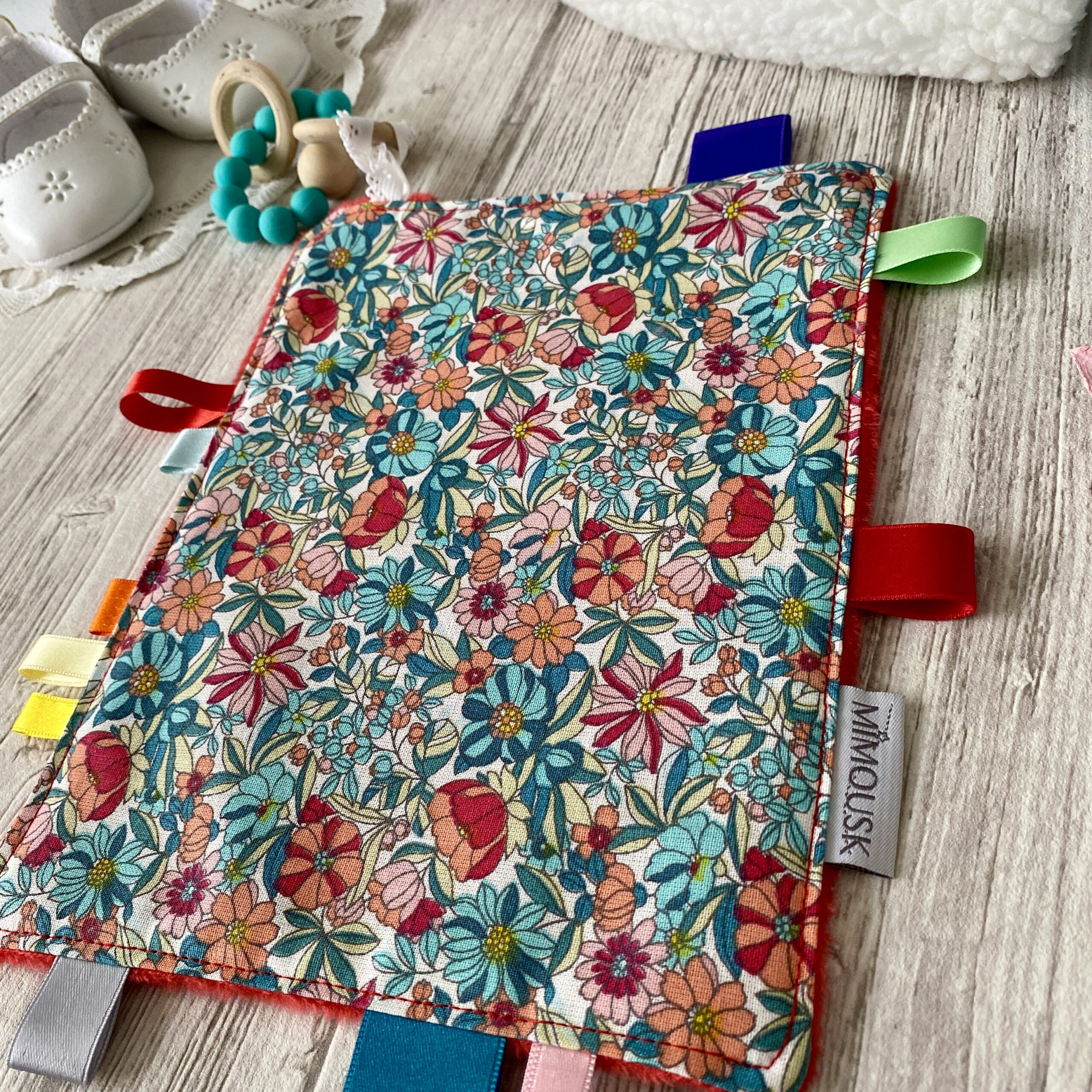Tissu 100% coton oeko-tex. Dos en polaire toute douce. Lavable en machine à 30°. Anneau bois détachable.