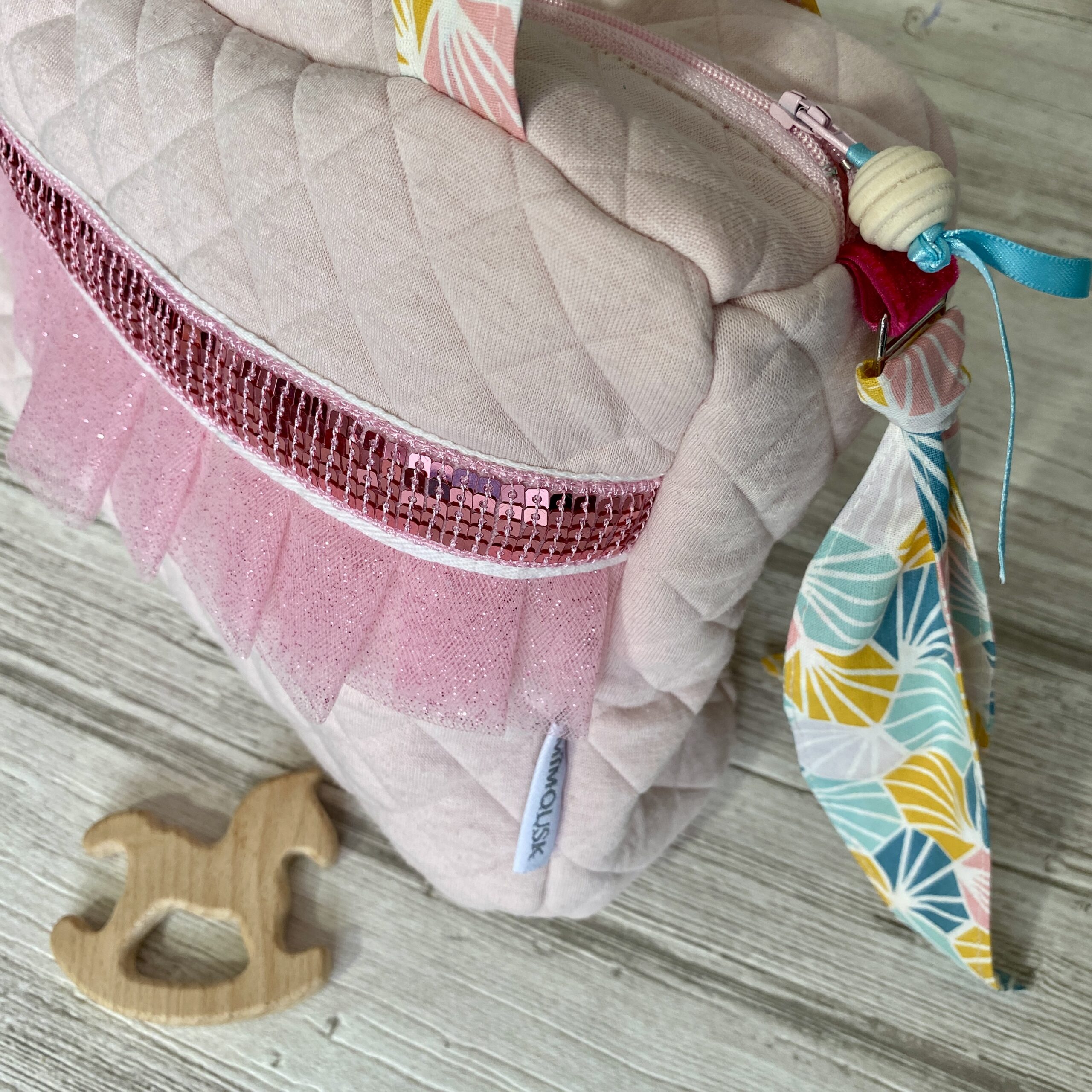 Sac ballerine / molleton, tulle pailleté, sequins / Rose