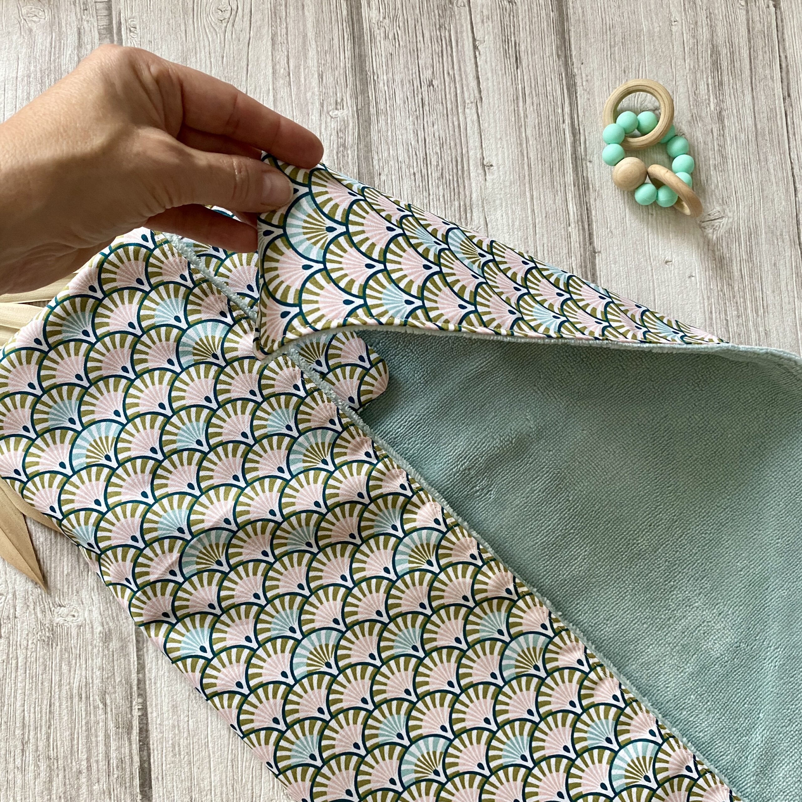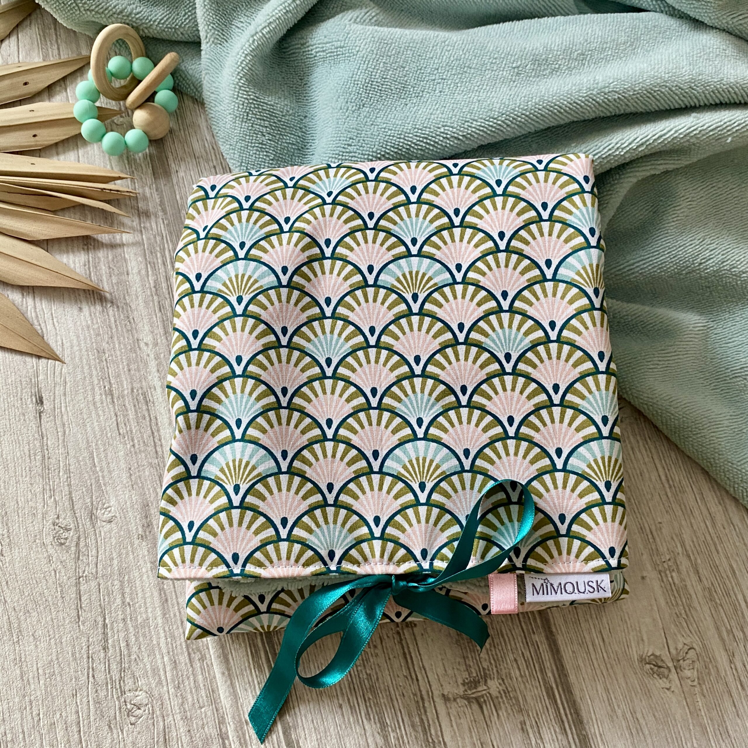 Tapis à langer nomade / eventails yona, rose celadon