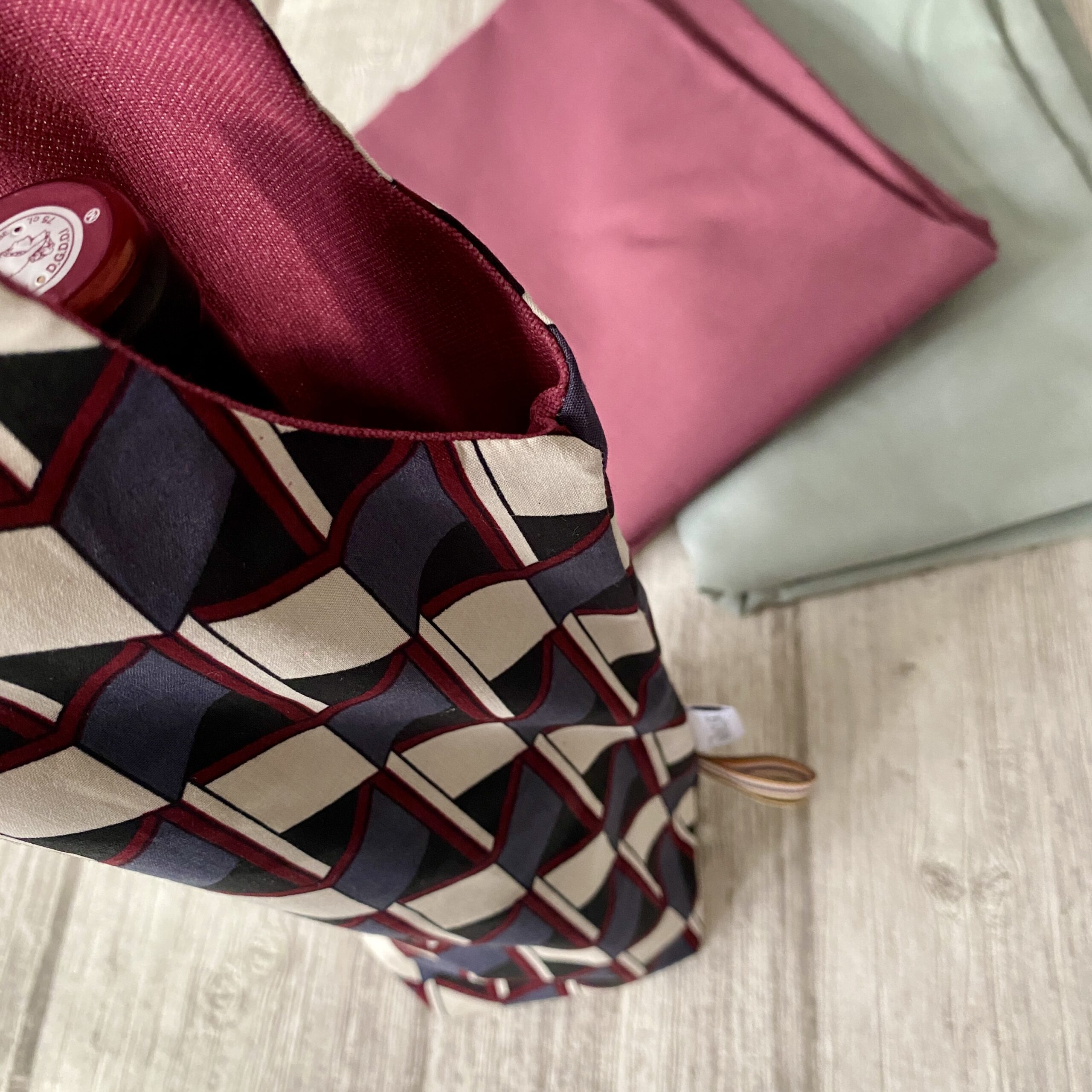 Porte-bouteille en tissu doublé pour transporter avec chic une bouteille chez des amis. Limite les emballage donc bon pour la planète, vous pouvez aussi leur laisser en cadeau ! Contribue à la démarche zéro déchet en limitant les emballages jetables. C’est donc pratique, joli et eco-friendly…