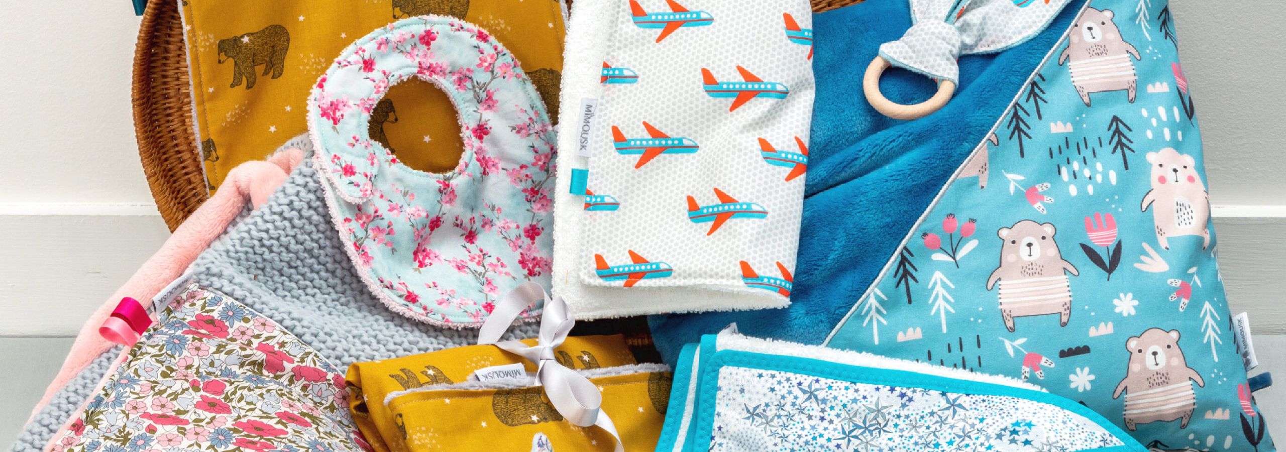 Sélectionner un cadeau de naissance Mimousk, c’est faire le choix du cadeau original fait-main. C’est soutenir une petite entreprise française, où tout conçu et cousu main par la créatrice. C’est avoir un coup de coeur pour les motifs, tissus, et matières utilisées. Sélectionnés avec soin et au maximum avec les labels bio, gots et oeko-tex, pour le bien-être de vos petits et de la planète. Ce sont aussi des objets créés pour leur côté pratique et utile pour les parents.