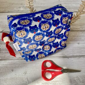 Trousse longue enduite triangle, motif palmes, bleu bordeaux