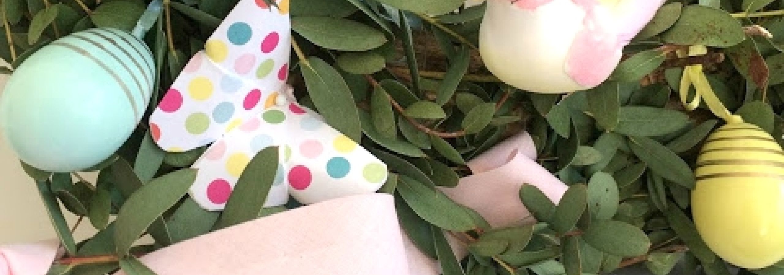J’ai récupéré la base d’une couronne en paille qui avait déjà servi pour Noël (on recycle !). Ensuite j’ai entouré cette couronne avec les tiges, coincées entre elles pour les faire tenir tout autour. Et pour décorer le tout je suis passée chercher des oeufs pastels ou encore quelques décos chez Zeeman pour quelques euros. Les papillons et les oiseaux sont fixés avec des pinces. Des épingles tiennent les rubans des oeufs.