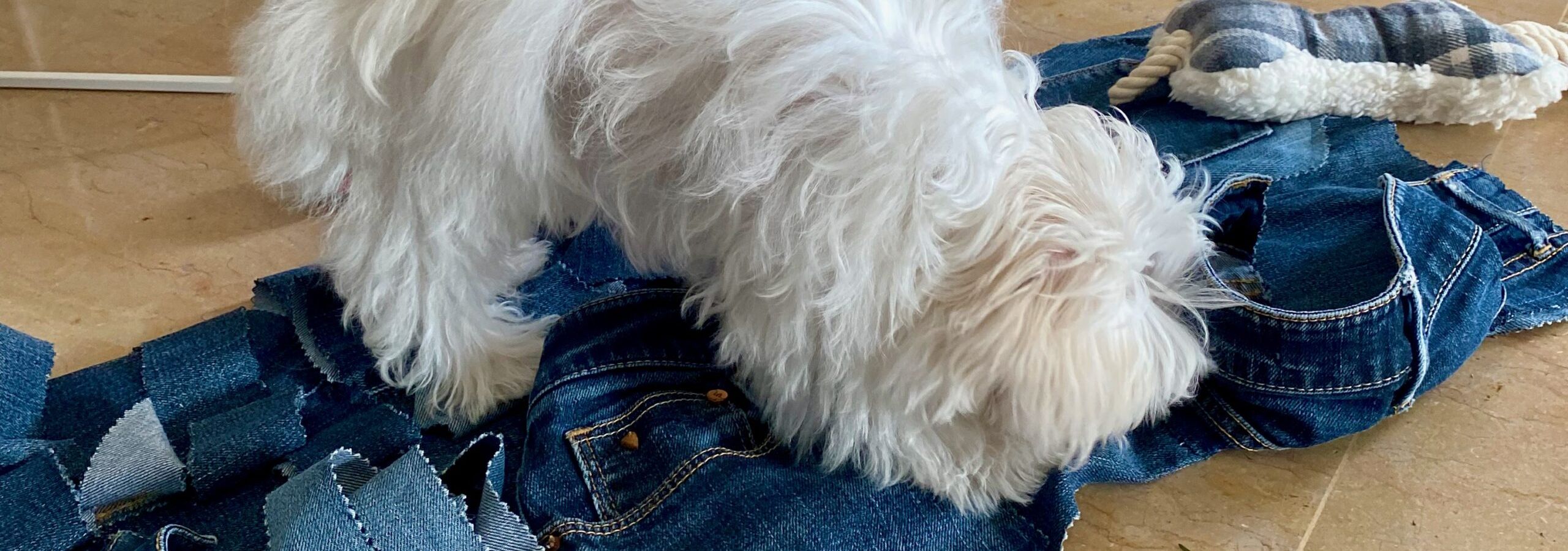 - Bravo ! Vous avez réussi à coudre un tapis de fouille en jean unique pour votre chien. J’espère que ce tuto de tapis de fouille pour chien vous aura aidé. Maintenant, il ne reste plus à votre compagnon à 4 pattes qu’à le tester, le farfouiller, le renifler, et passer de bons moments pour s’occuper tout seul.